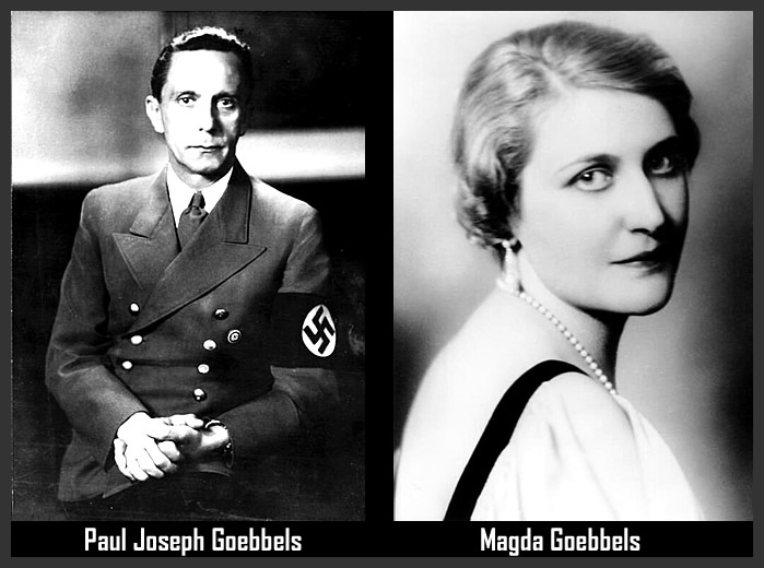 Naquela listinha maldita de monstros Nie Wieder que eu fiz (mas, que está incompleta), é dificílimo escolher qual foi o monstro filho-da-puta mais monstruoso e mais cruel de todos, mas, eu vou arriscar e dar o título de Monster Nummer Eins para o político alemão, filologista, Ministro da Propaganda na Alemanha Nazista (entre 1933 e 1945) e 23º Chanceler da Alemanha (de 30 de abril de 1945 a 1º de maio de 1945) Paul Joseph Goebbels (Rheydt, 29 de outubro de 1897 – Berlim, 1º de maio de 1945), pois, na noite de 1º de maio de 1945, esse Monster Nummer Eins mandou chamar o dentista de merda das SS, Helmut Kunz (Ettlingen, 26 de setembro de 1910 – Freudenstadt, 23 de setembro de 1976), para injetar morfina nos seus seis filhos, para que ficassem inconscientes, e, em seguida, pudesse colocar uma ampola de cianeto de potássio (KCN) em suas bocas. Isso é coisa de monstro ou não é? Segundo o testemunho de Kunz, a pedido de Paul, o pai das crianças, ele administrou a morfina, mas, foi Johannna Maria Magdalena “Magda” Goebbels (Berlim, 11 de novembro de 1901 — Berlim, 1º de maio de 1945), a mãe, e o SS-Obersturmbannführer Ludwig Stumpfegger, o médico pessoal de Hitler, que administraram o cianeto. Mais tarde, por volta das 20h30min, Goebbels e Magda saíram do bunker e foram para o jardim da Chancelaria, onde se suicidaram (assassinando, assim, a Humanidade, pois, todo suicida é um homicida). Sabe como eu classifico tudo isso e todo o resto? Magia Negra da pior qualidade.