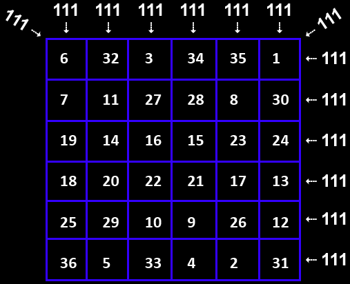 O valor total do Quadrado do Sol é 666, que é o Valor Secreto de 36.