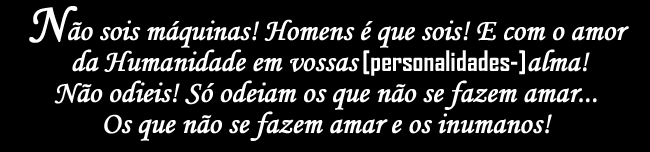 Não sois máquinas! Homens é que sois! [Não sois demônios! Deuses é que sois!] (Charles Chaplin).