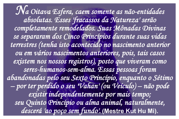 , ainda que a morte não exista, paradoxalmente, acabaremos entropizados e morrendo definitivamente, isto é: perderemos a nossa Impressão Digital Cósmica e o nosso DNA Unimultiversal, fato macabro que o Mestre Ascensionado Kut Hu MI denominou completo remodelamento. Que isto não aconteça com ninguém. Se depender de mim, não acontecerá. Está feito. Está selado. A.'. U.'. M.'. Seja como for, o fato pouco conhecido é que, no processo da nossa hominização, que não deriva de ancestrais primatas, já fomos seres etéreos, sem mente e vivíamos em uma Ilha Sagrada e Imperecível. Evoluímos, nascemos do suor, nos tornamos sem ossos e vivíamos em um Continente Hiperbóreo. Em seguida, na Lemúria, passamos a nascer de um ovo e, inicialmente, éramos andróginos. Na Quarta Raça-raiz, a Atlante, éramos seres gigantes. Nesta Quinta Raça-raiz, Ariana, desta Quarta Ronda, estamos em processo de desenvolver o nosso intelecto superior e a nossa espiritualidade. Mas, ainda teremos que peregrinar por uma Sexta Raça-raiz, mais desenvolvida do que a Quinta, e, depois, pela Sétima Raça-raiz, mais desenvolvida do que a Sexta. Em algum momento desta trajetória educativa, precisaremos escolher: continuar magos negros, cruéis e descarados, e acabar sendo entropizados (completamente remodelados, como, educativamente, advertiu o Mestre Ascensionado Kut Hu MI) ou, enfim, nos tornar