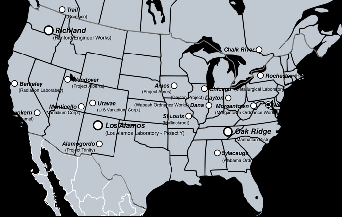 locais mais importantes escolhidos para o Projeto Manhattan.)