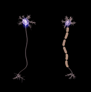nos quais o sinal "salta" entre os Nódulos de Ranvier)